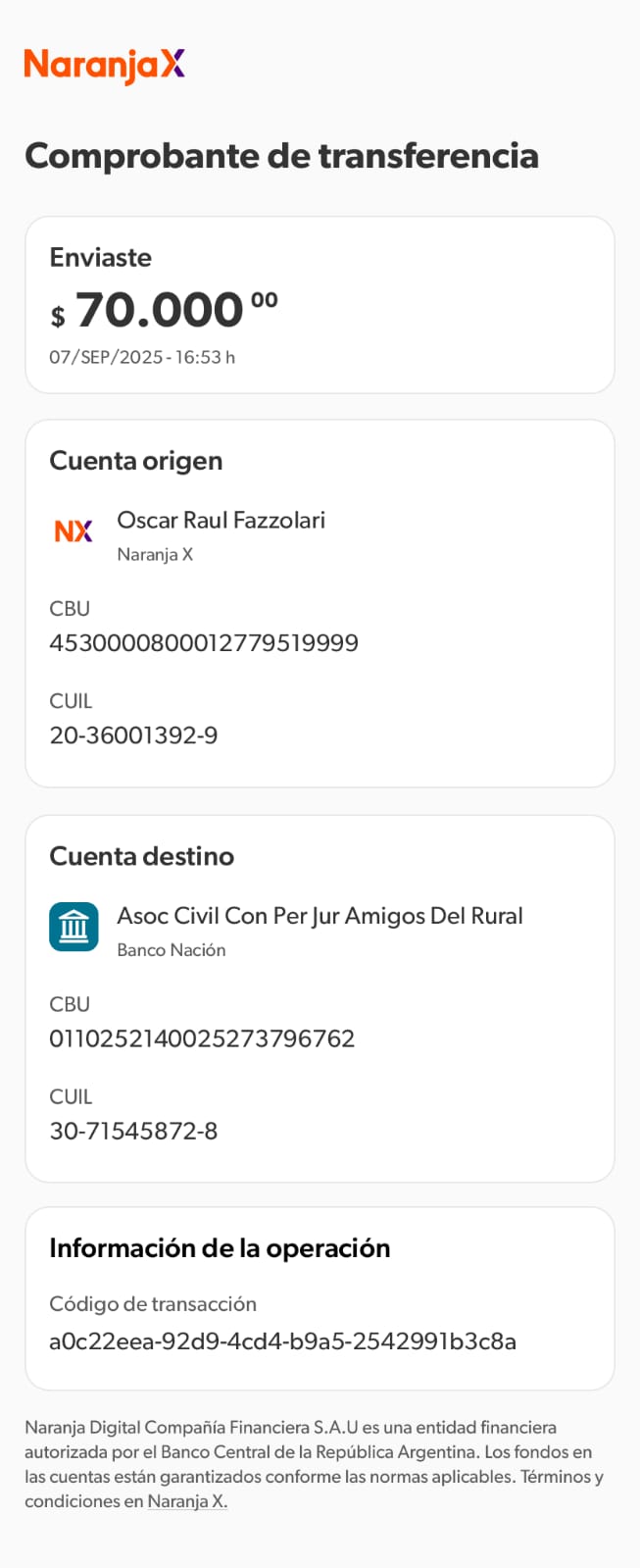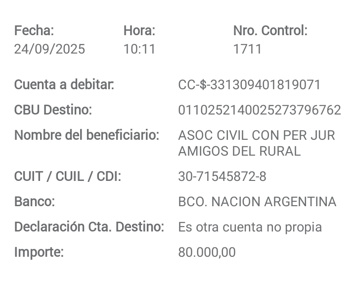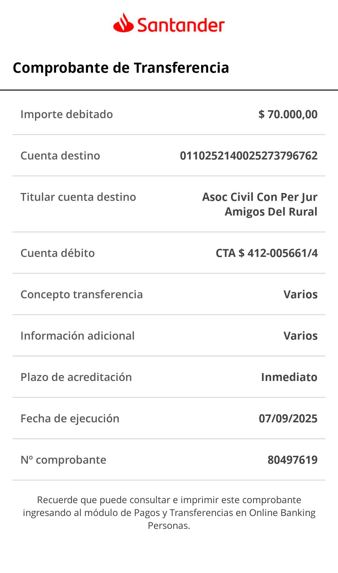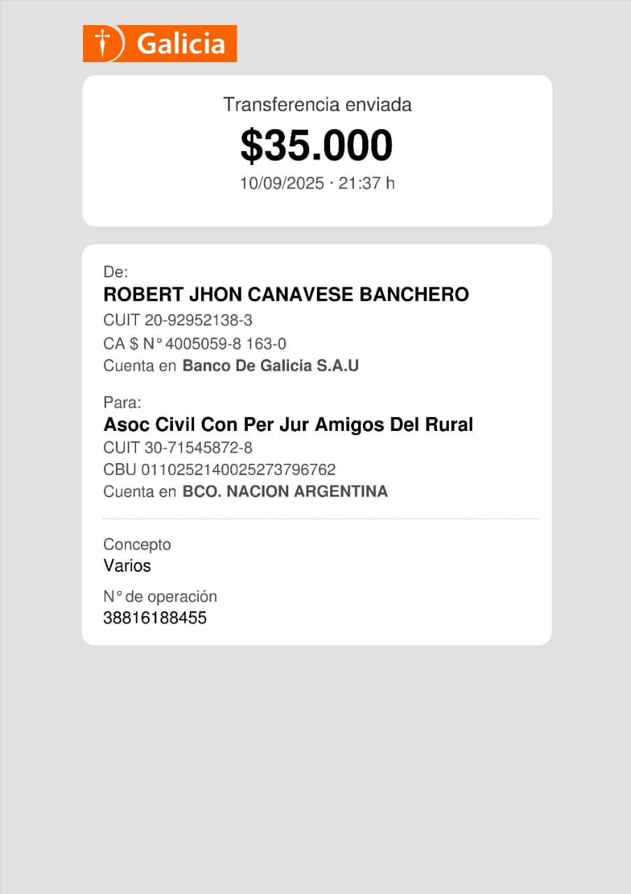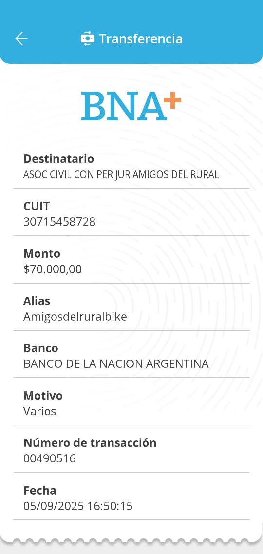 | XXXL | Tilde la opción luego de descargar la ficha médica | HE LEÍDO y ACEPTO el reglamento en todos sus términos. | Corresponde Alicia Gonzalez, no es el titular de la cuenta de la transferencia |