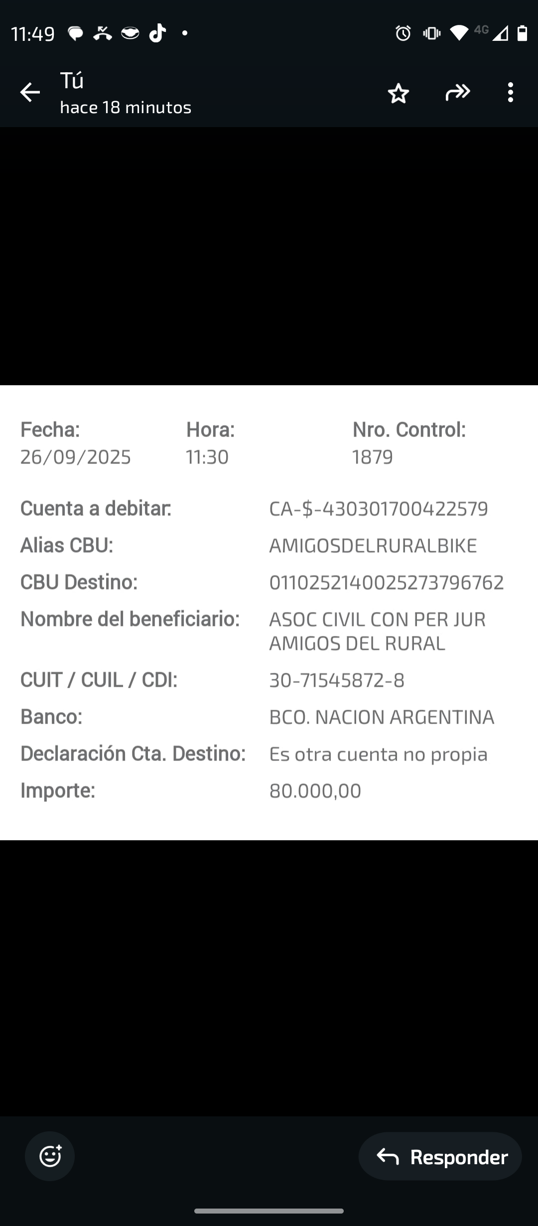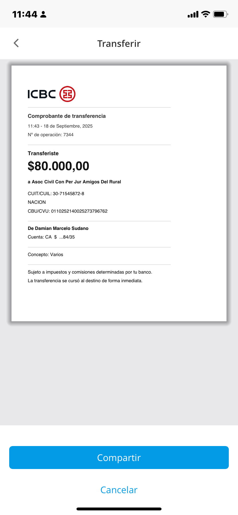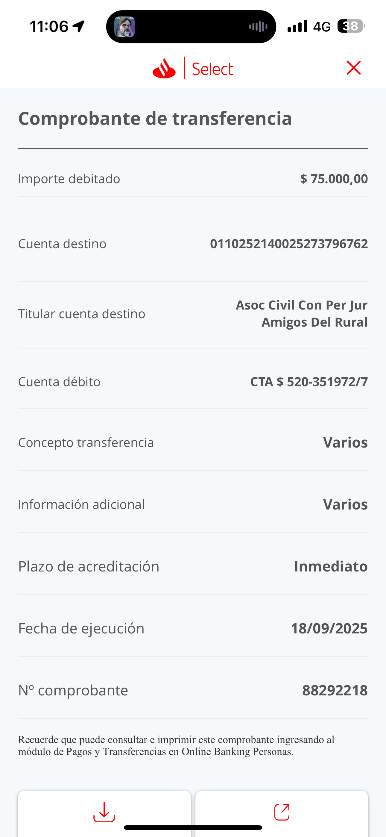 | XXXL | Tilde la opción luego de descargar la ficha médica | HE LEÍDO y ACEPTO el reglamento en todos sus términos. | Corresponde Alicia Gonzalez, no es el titular de la cuenta de la transferencia |