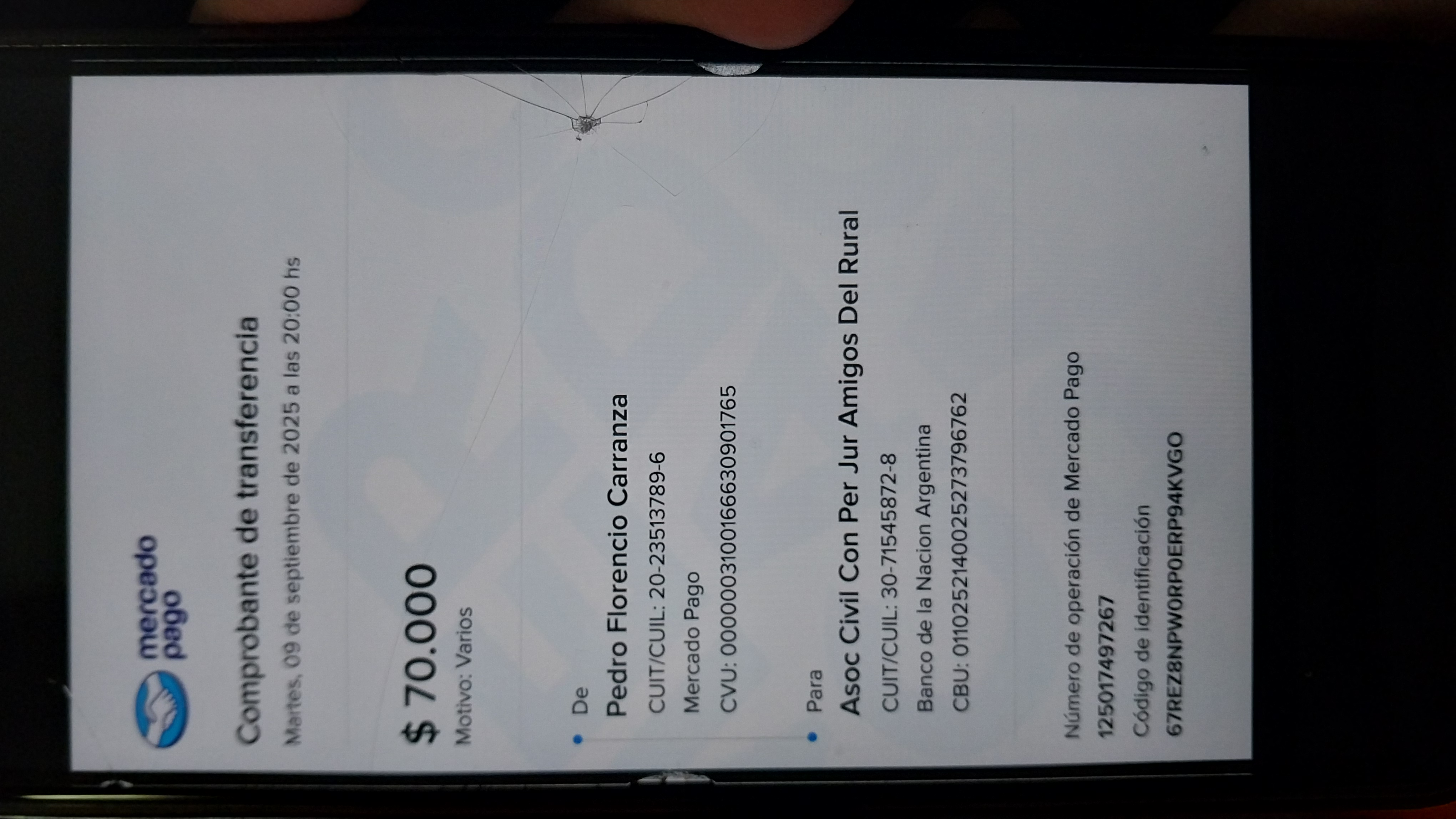| Pataka | ********** | DNI | 23620891 | Horacio Gadient | 27/12/1973 | 51 | Masculino | Av colonizadores 17 | Esperanza | 3080 | Santa fe | petakon_73@hotmail.com | +543496657596 | HOMBRES - Master C1- Años: 1975-1974-1973-1972-1971 | Hasta el 9 de septiembre de 2025 distancia 75K $70,000 | | Screenshot_20250903_094709_WhatsApp.jpg