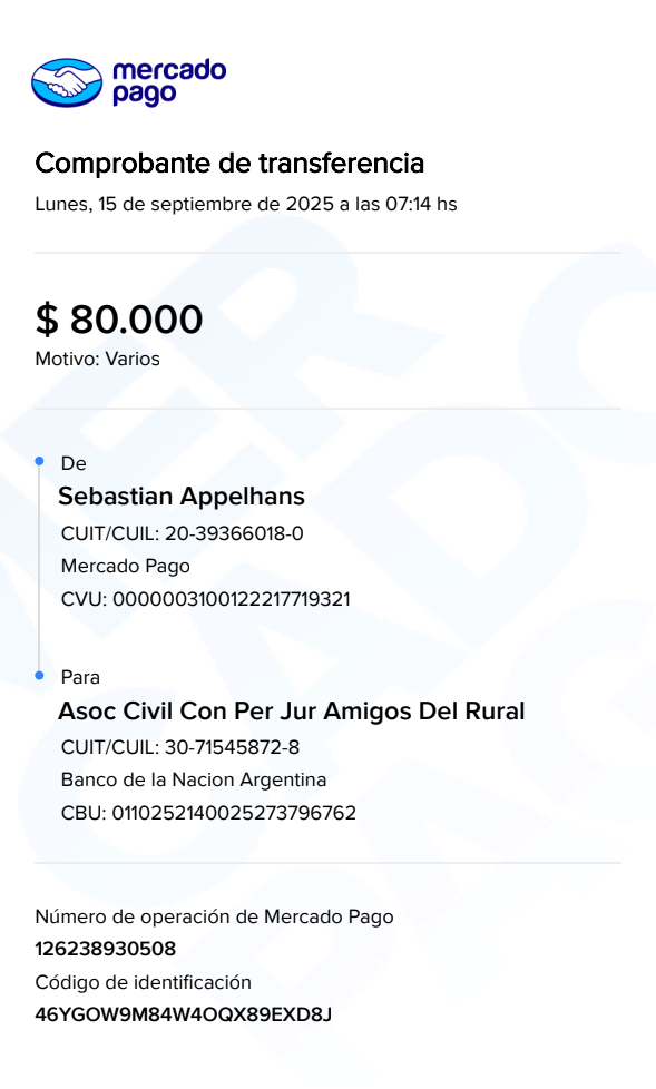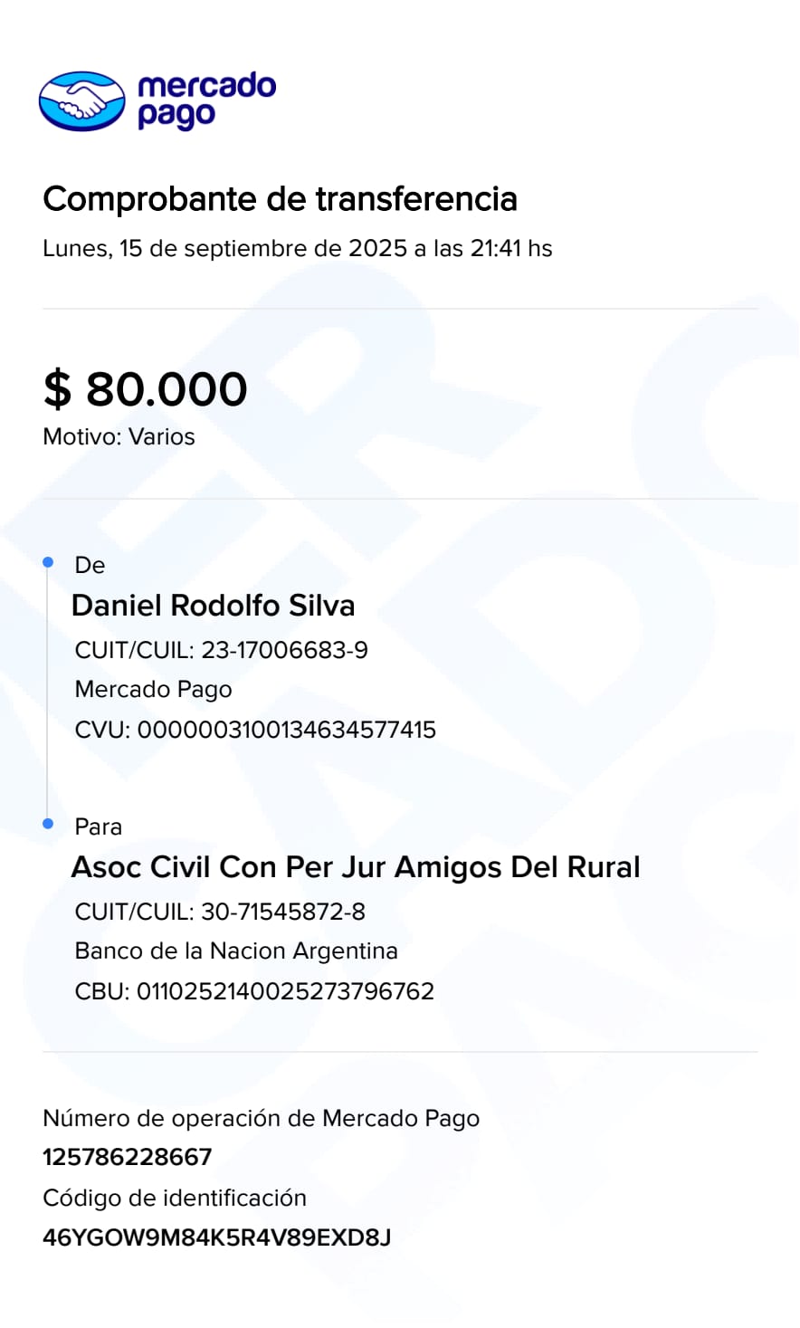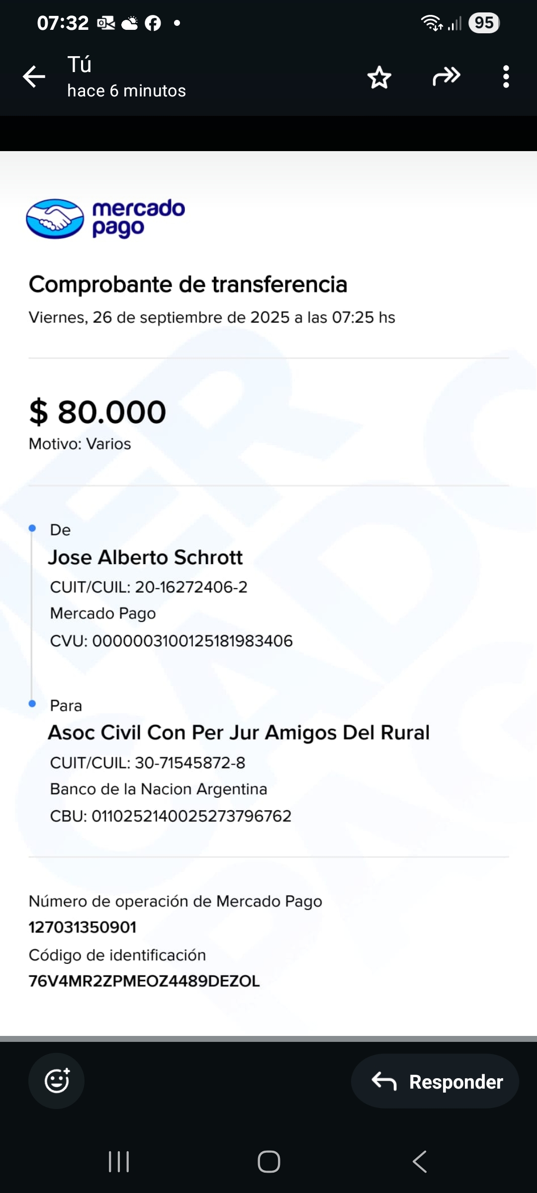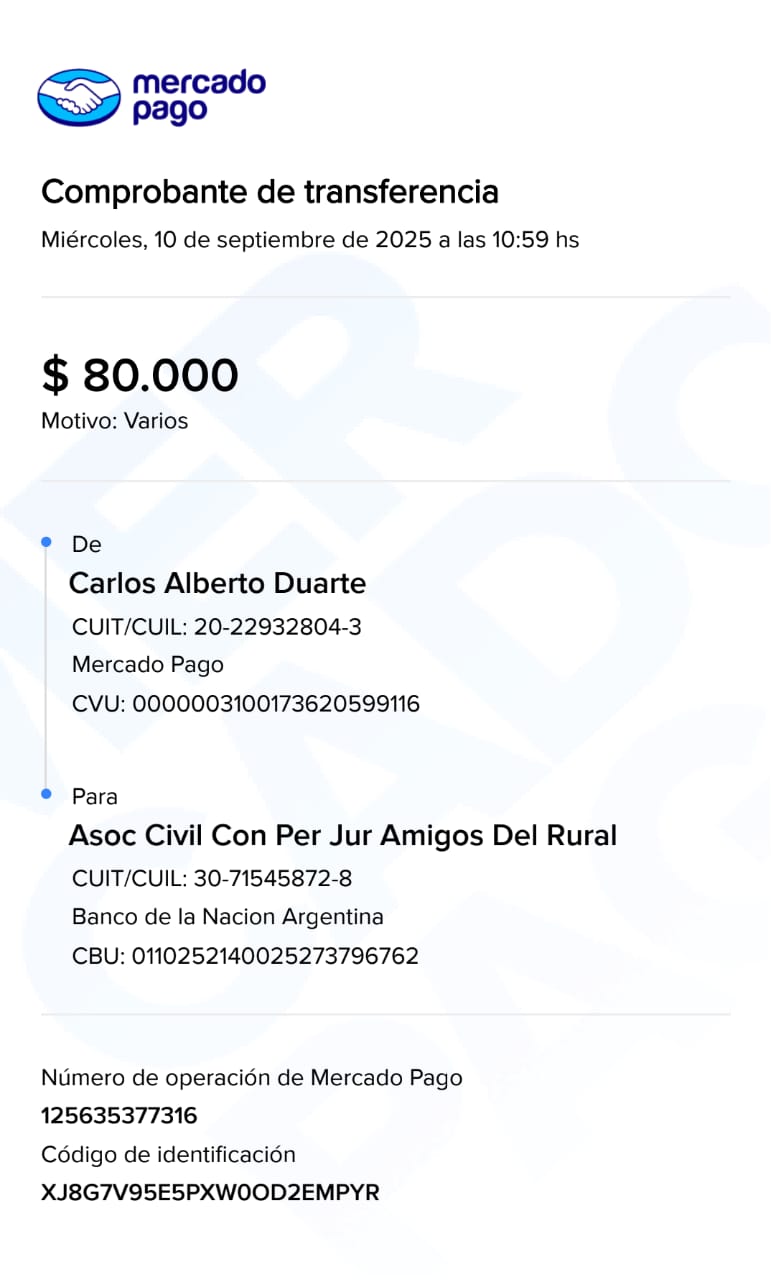 | Carlosruppen | ********** | DNI | 35294421 | Carlosruppen | 01/07/2025 | 34 | Masculino | Cuidad de esperanza 1424 | Rafaela | 2300 | Santa fe | cruppen01@gmail.com | +543492673484 | HOMBRES - Master A1- Años: 1995-1994-1993-1992-1991 | Hasta el 27 de septiembre de 2025 distancia 75K $80,000 | | mercadopago_comprobante_127062161285.pdf