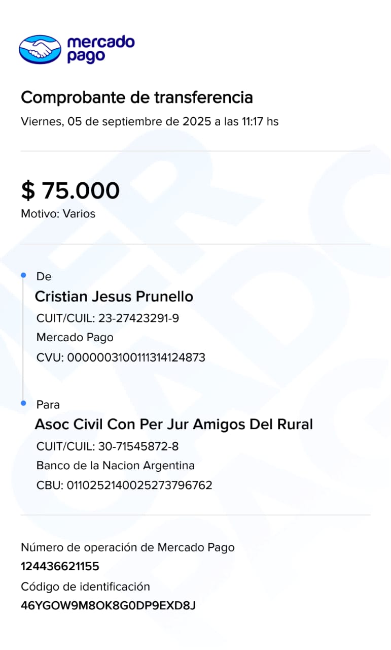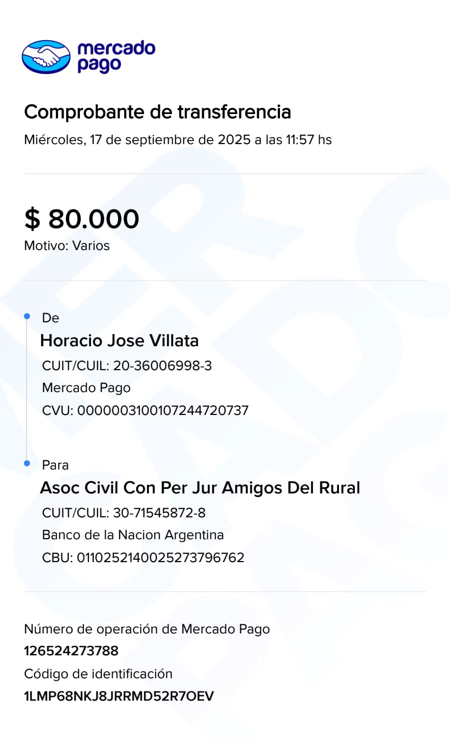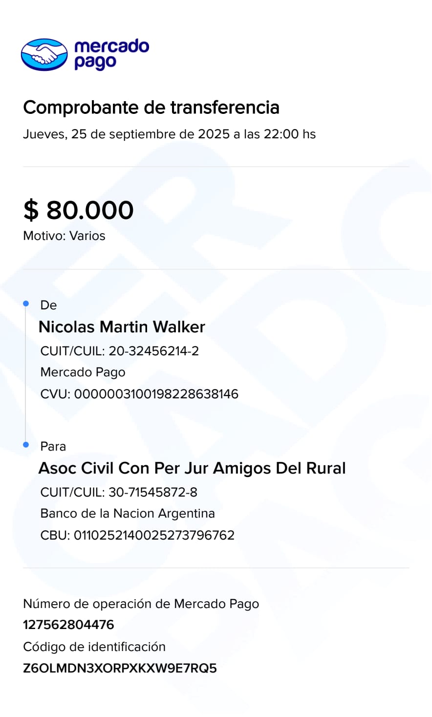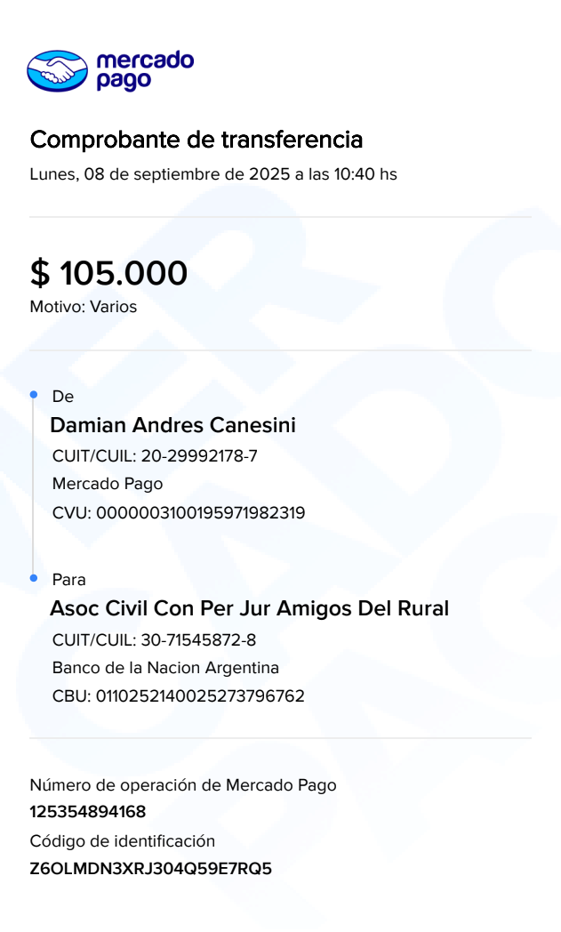 | Caruca | ********** | DNI | 16092508 | Sergio Carmassi | 16/10/1962 | 62 | Masculino | Roca 2242 | San Lorenzo | 2200 | Santa fe | carmassicaruca@gmail.com | +543476612261 | HOMBRES - Master D1- Años: 1965-1964-1963-1962-1961 | Hasta el 9 de agosto de 2025 distancia 75K $60,000 | | Screenshot_20250804_195918_Mercado-Pago.jpg