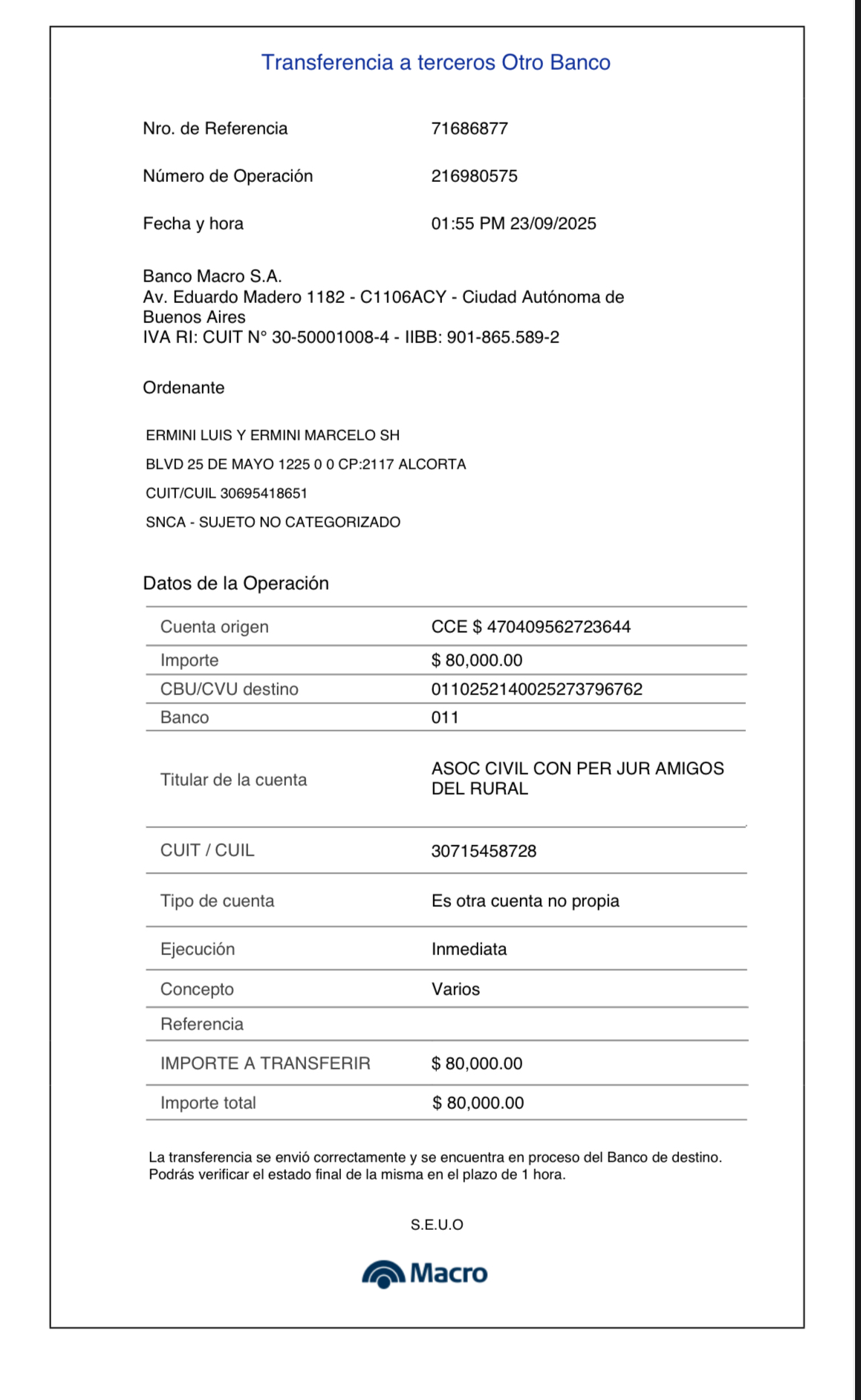 | Gulacerme001@gmail.com | ********** | DNI | 24520979 | Maximiliano Cermesoni | 29/08/2025 | 50 | Masculino | Urquiza 1560 | Federal | 3180 | Entre Rios | mariavictoriaruizc@gmail.com | +543454400167 | HOMBRES - Master C1- Años: 1975-1974-1973-1972-1971 | Hasta el 27 de septiembre de 2025 distancia 75K $80,000 | | inbound5274783131453405177.jpg