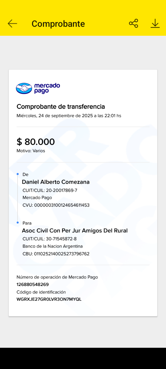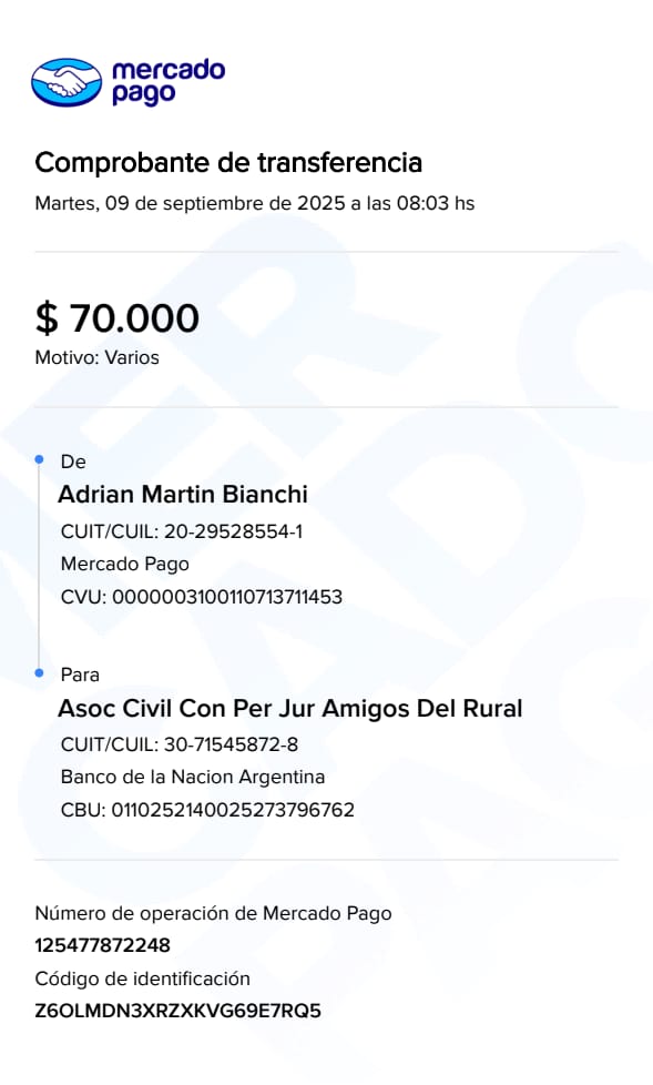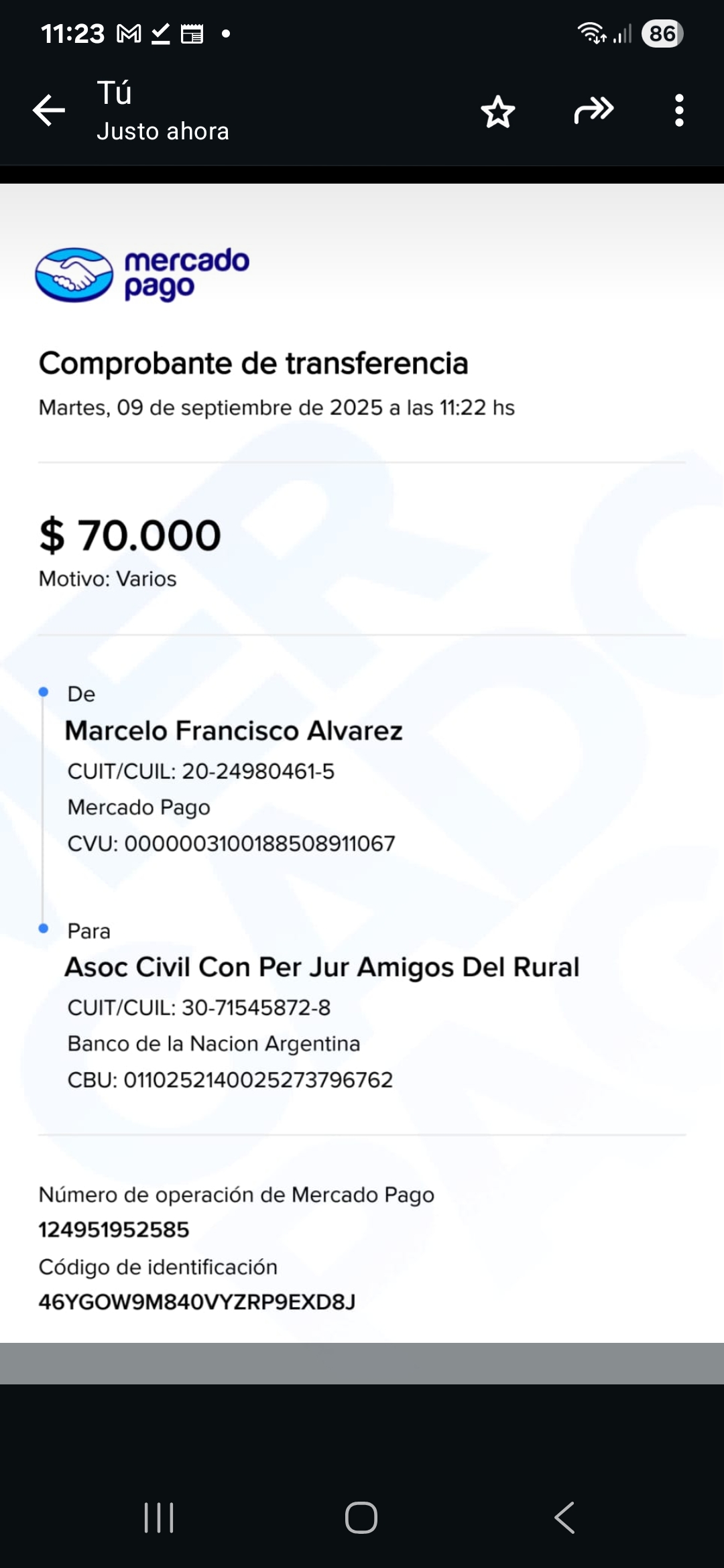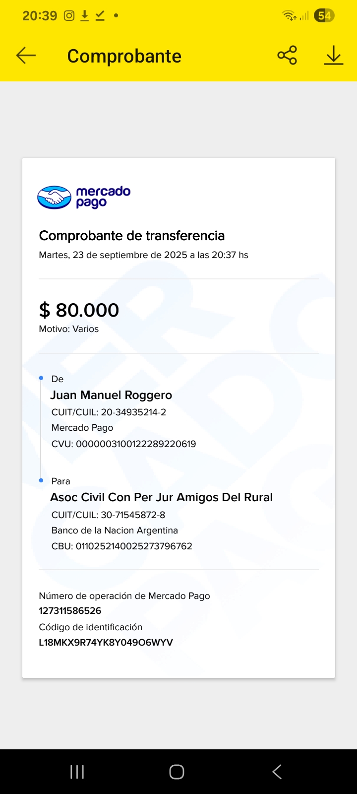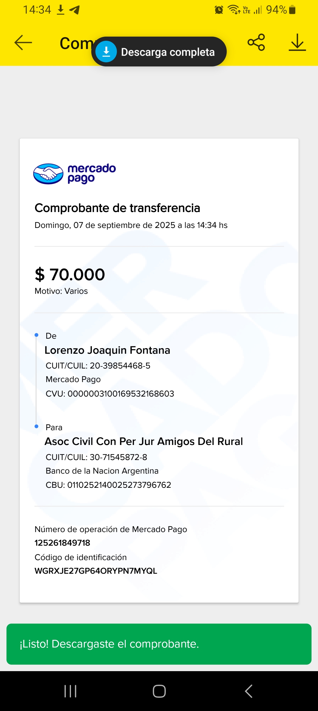 | Nico | ********** | DNI | 22413586 | Diego Chiabrando Serra | 23/08/2025 | 53 | Masculino | Santa fe 121 | Bella Italia | 2301 | Santa fe | diegochiabrando7@gmail.com | +543492215889 | HOMBRES - Master C1- Años: 1975-1974-1973-1972-1971 | Hasta el 9 de agosto de 2025 distancia 75K $60,000 | | Screenshot_20250807_075154_Mercado-Pago.jpg