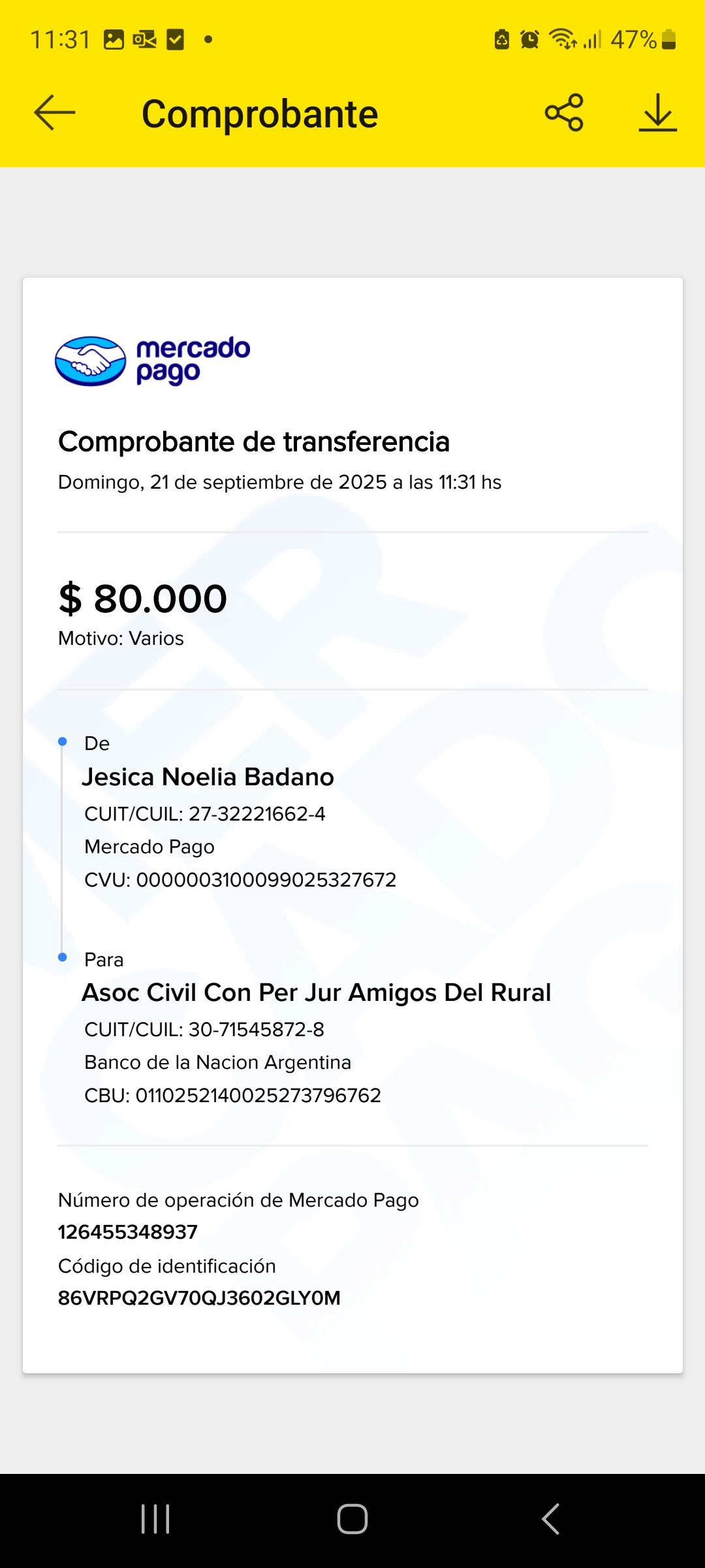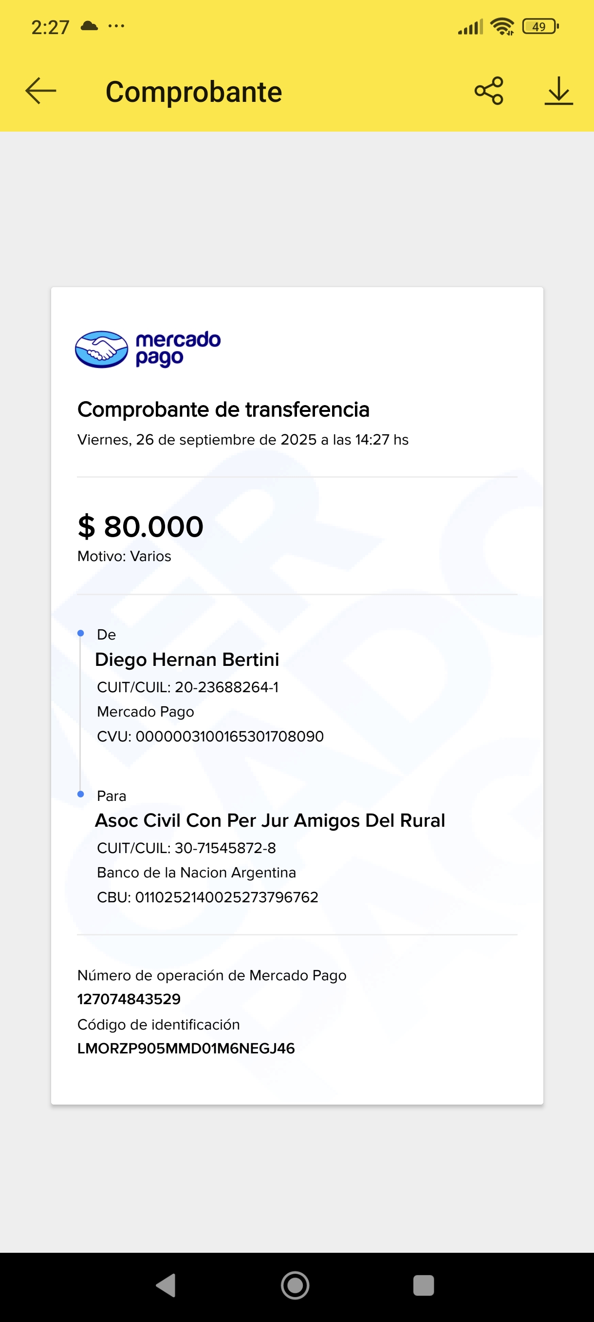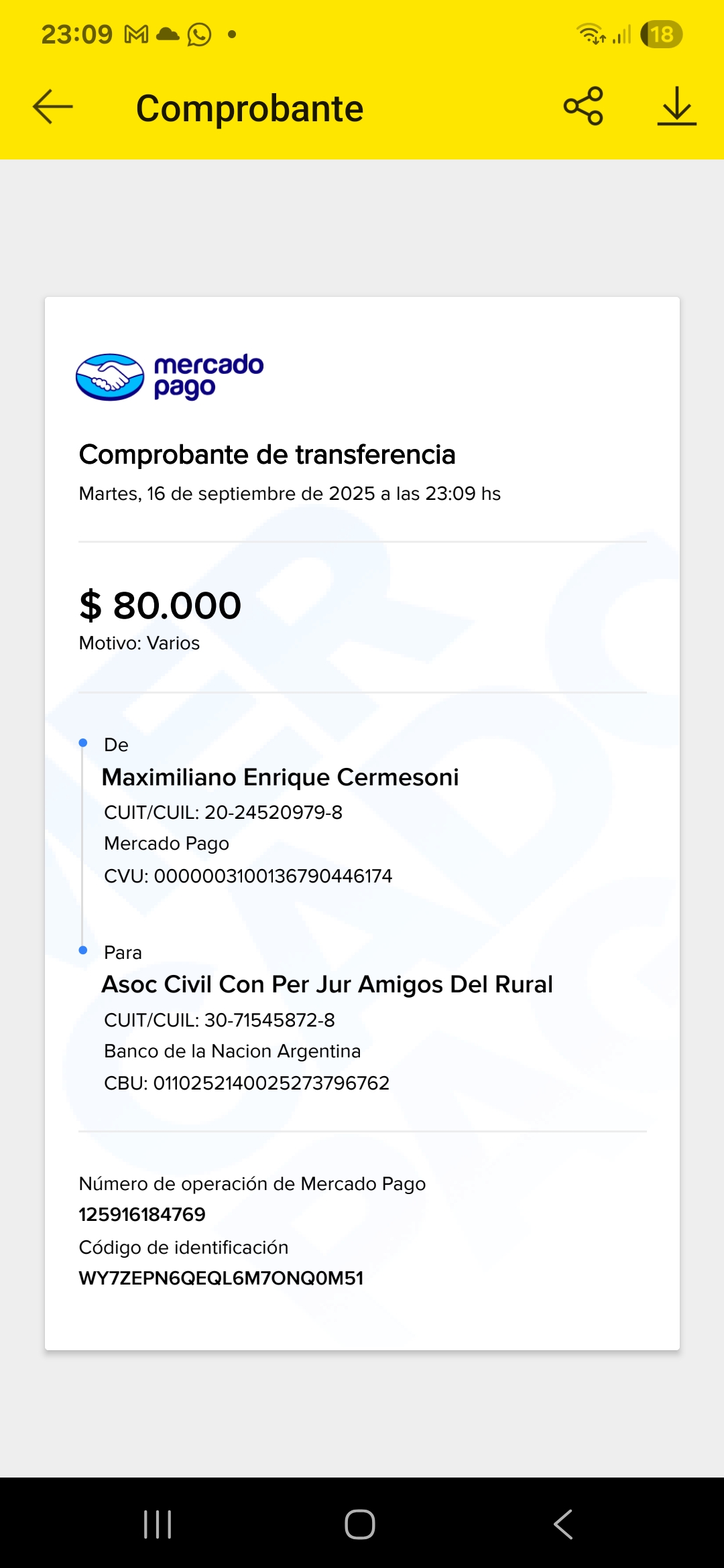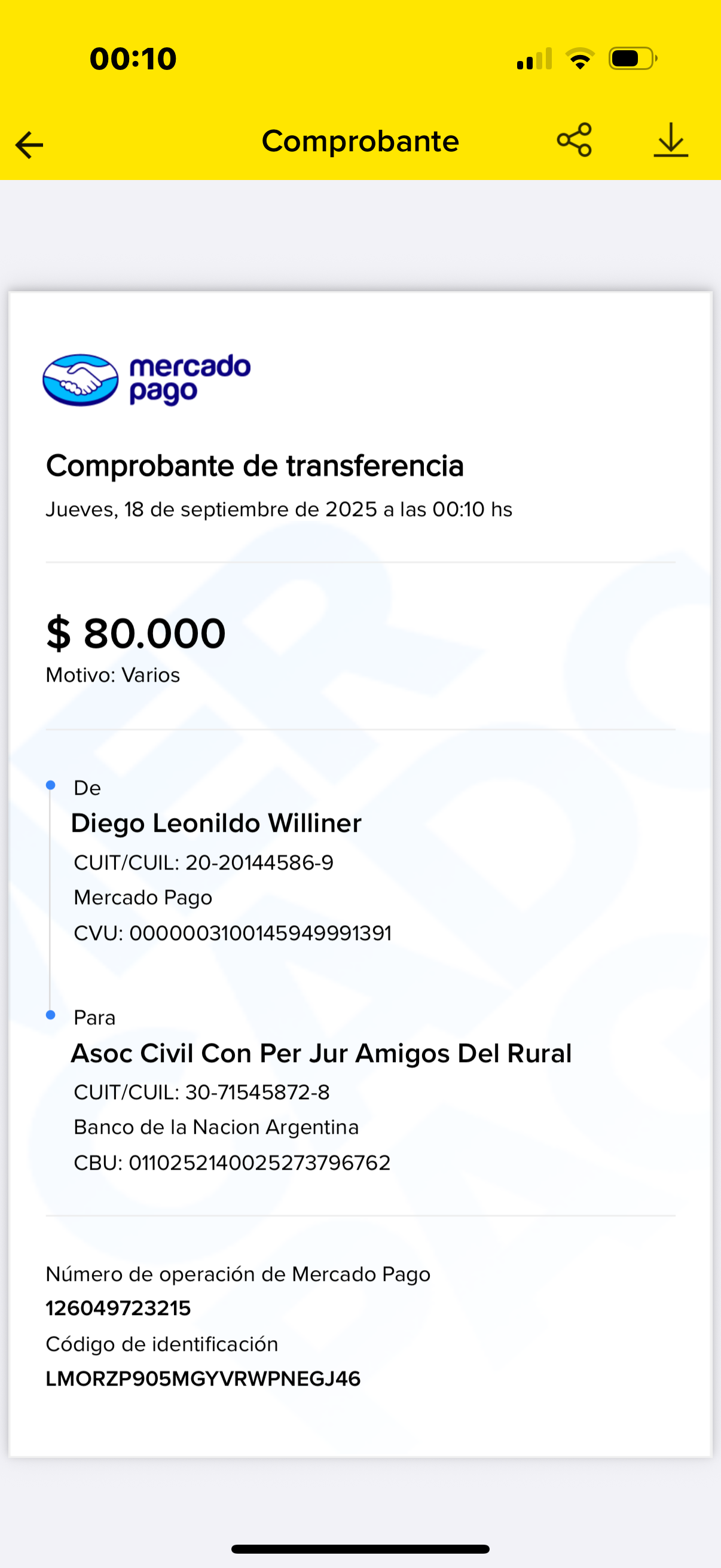| Nico | ********** | DNI | 22413586 | Diego Chiabrando Serra | 23/08/2025 | 53 | Masculino | Santa fe 121 | Bella Italia | 2301 | Santa fe | diegochiabrando7@gmail.com | +543492215889 | HOMBRES - Master C1- Años: 1975-1974-1973-1972-1971 | Hasta el 9 de agosto de 2025 distancia 75K $60,000 | | Screenshot_20250807_075154_Mercado-Pago.jpg