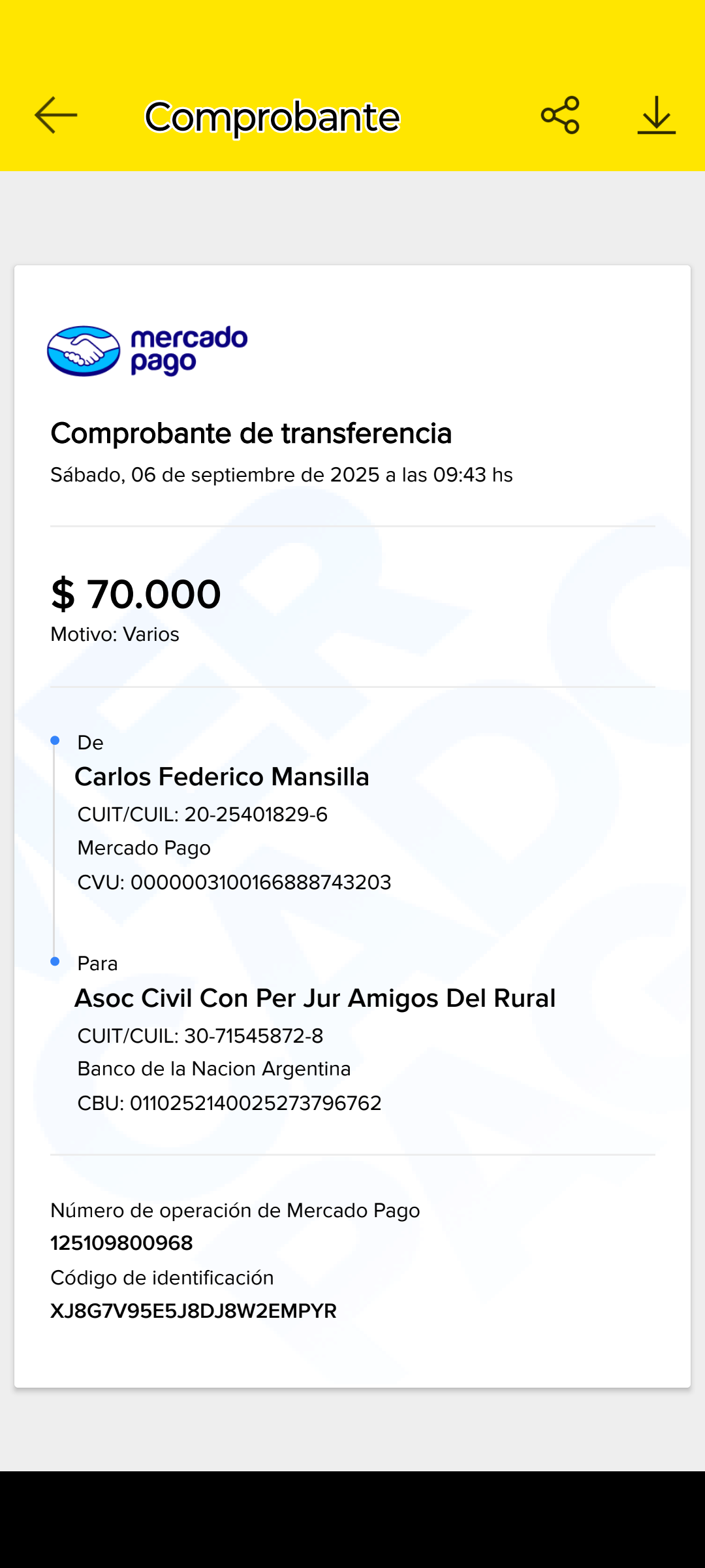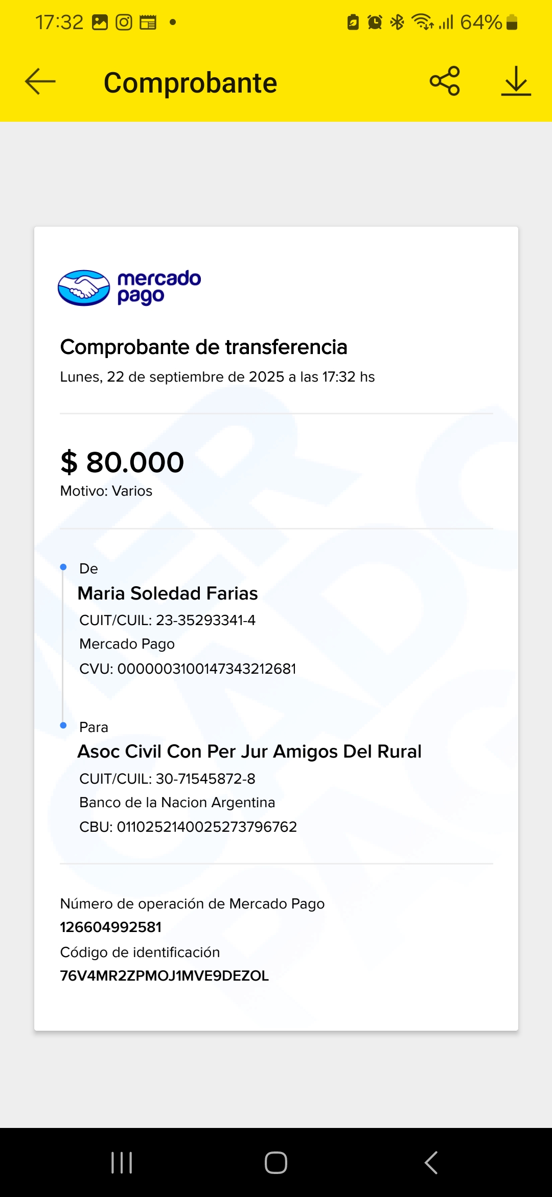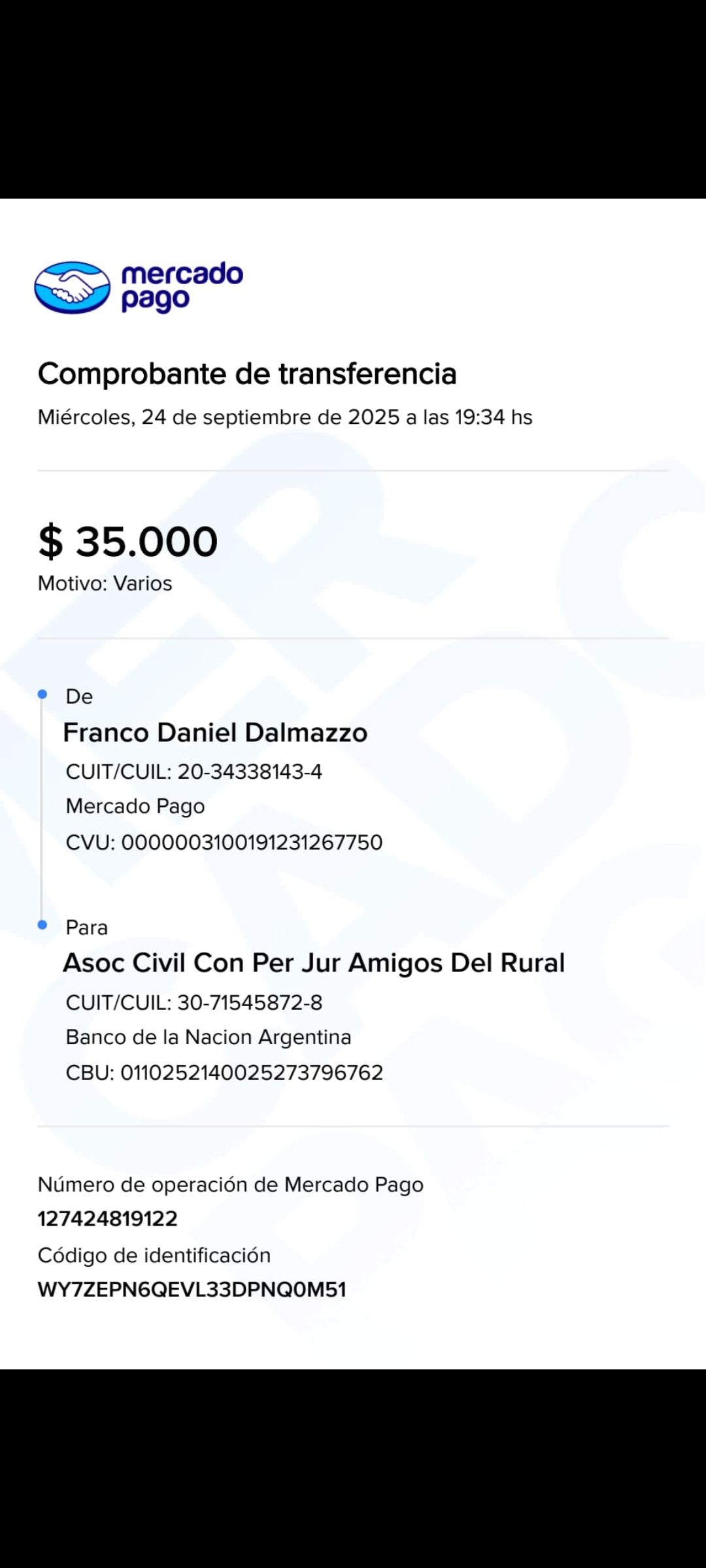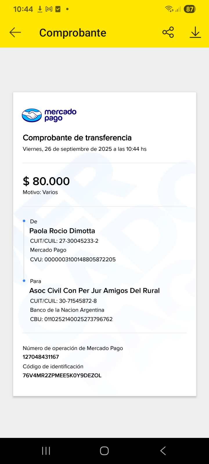 | Nico | ********** | DNI | 22413586 | Diego Chiabrando Serra | 23/08/2025 | 53 | Masculino | Santa fe 121 | Bella Italia | 2301 | Santa fe | diegochiabrando7@gmail.com | +543492215889 | HOMBRES - Master C1- Años: 1975-1974-1973-1972-1971 | Hasta el 9 de agosto de 2025 distancia 75K $60,000 | | Screenshot_20250807_075154_Mercado-Pago.jpg