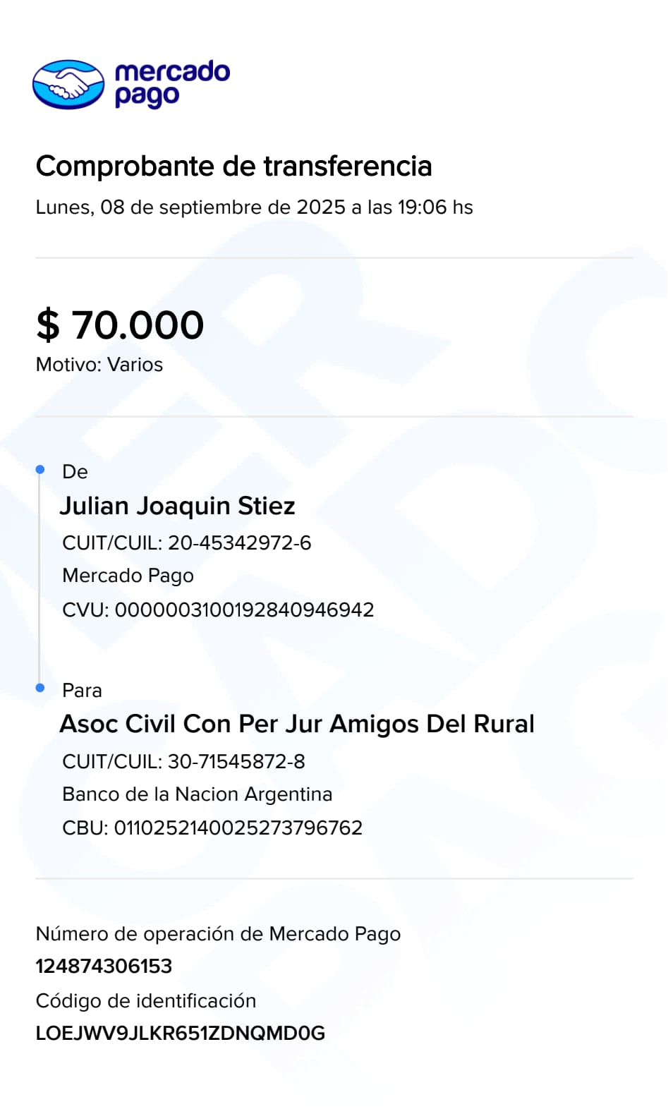 | Claudio juncos | ********** | DNI | 33010882 | Claudio juncos | 15/07/1987 | 38 | Masculino | 13 de diciembre 1893 | San Jorge | 2451 | Sante fe | claudiojuncos620@gmail.com | +543541289194 | HOMBRES - Master A2- Años: 1990-1989-1988-1987-1986 | Hasta el 9 de septiembre de 2025 distancia 75K $70,000 | | Comprobante-de-Transferencia-1.jpg